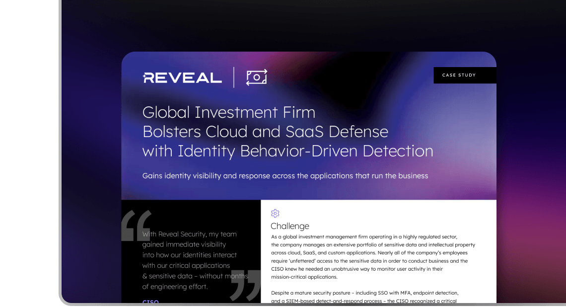 Reveal is deployed in regulated enterprises where identity threats emerge after authentication and traditional controls fall short.