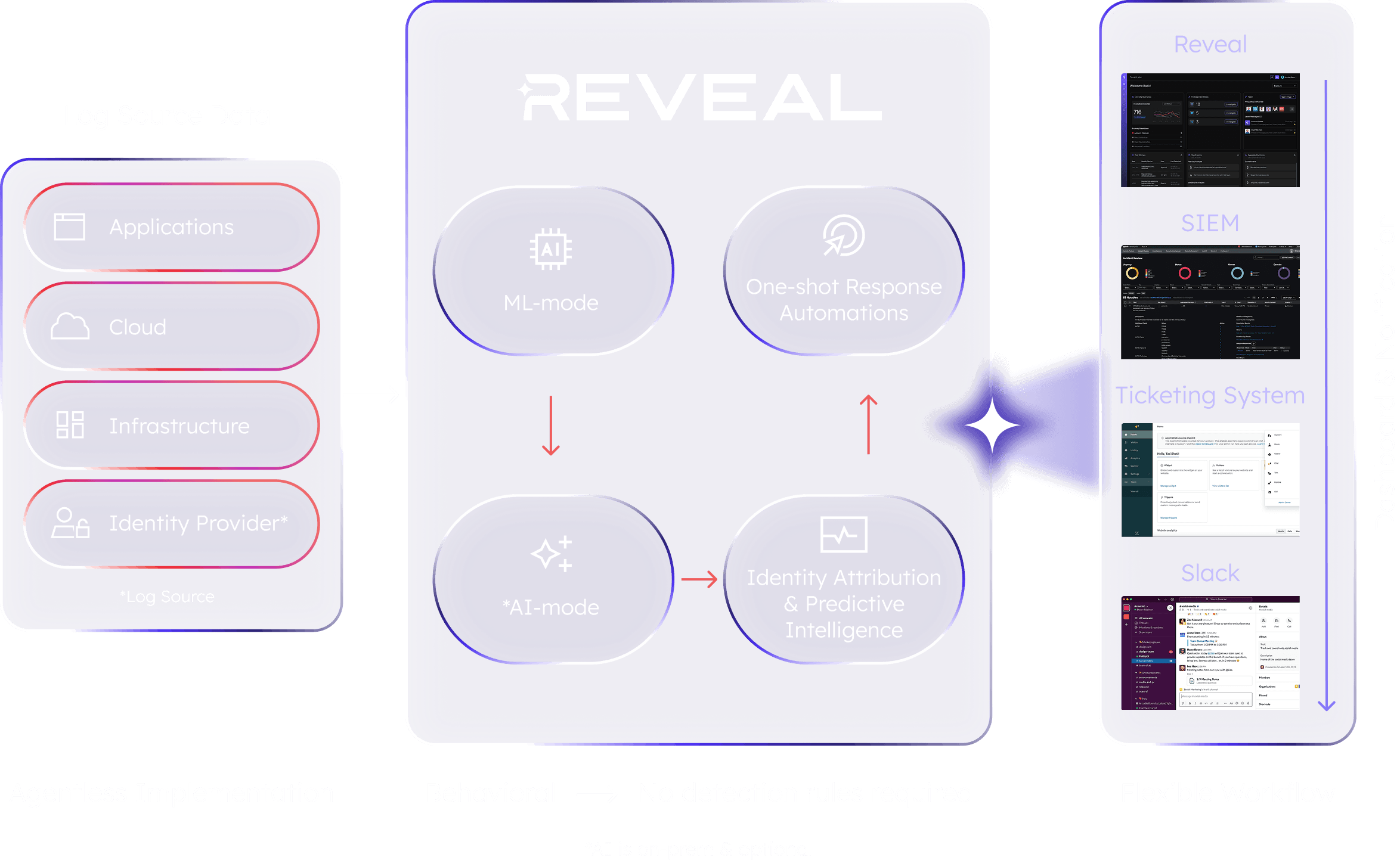 Reveal analyzes identity behavior after authentication to detect insider threats, compromised credentials, and non-human identity misuse – without agents, rules, or operational overhead.